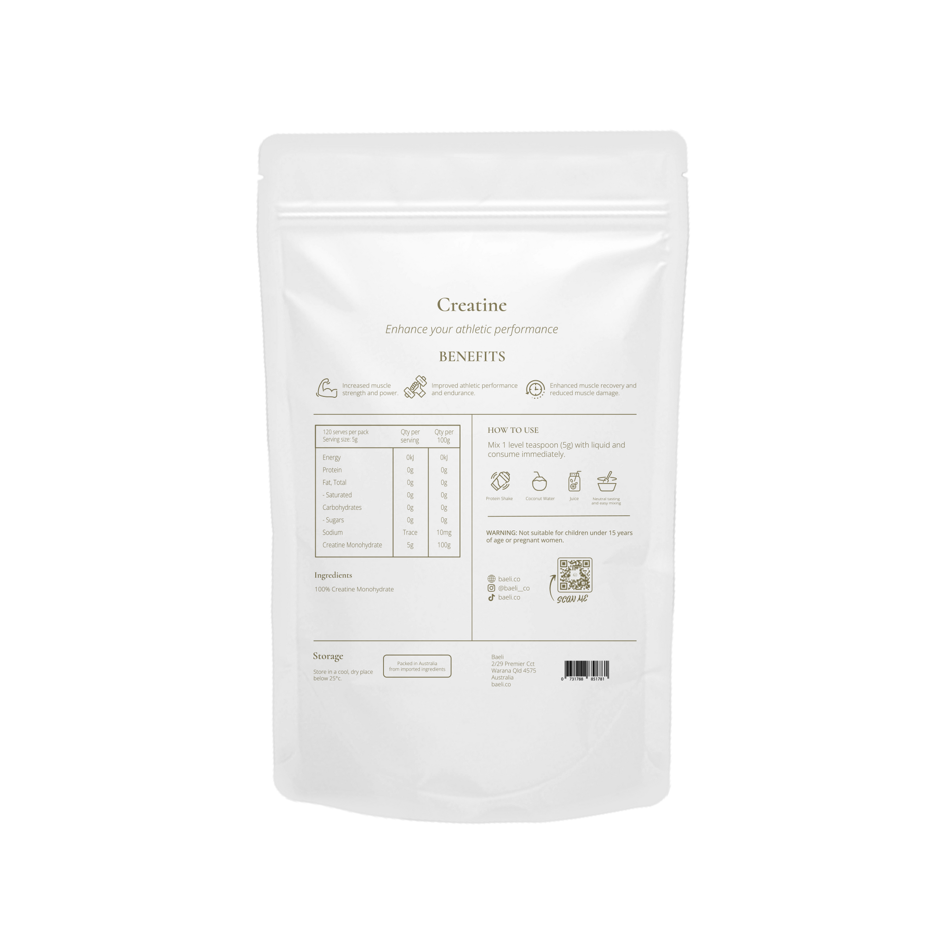 Because Baeli creatine is unflavoured, it blends easily into drinks without altering flavour.